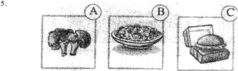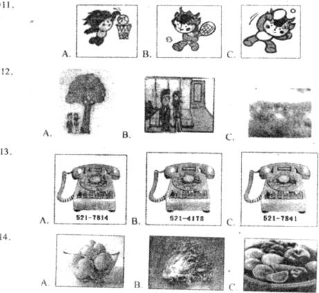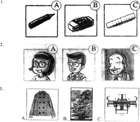 (一)录音中有5个单词,每个单词听一遍,然后从A、B、C中选出与所听单词意思相符的图片。