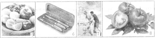 (一)根据图画写出所学单词(每幅图画至少写出两个单词)。(8分)