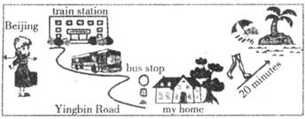 假如你是Mary,你的朋友Rose想从北京到你居住的海滨城市来旅游。下面是一张示意图,请根据此图,写一封电子邮件,告诉Rose如何从北京到你所居住的城市,并告诉她每天能步行去海边玩。词数60左右,开头和结尾部分已给出。