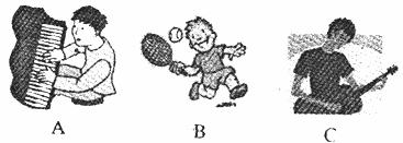 (一)录音中有五个句子,每个句子听两遍,然后在每小题A、B、C三个选项中,选出与你所听到的句子意思相符的图片。