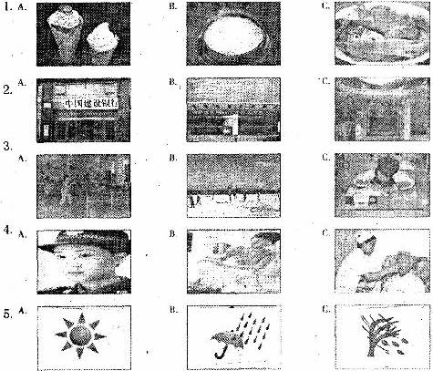 (一)听句子,选择与句中信息相符的图片。(读两遍)