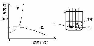 14、甲、乙两种固体的溶解度曲线如下图。现将两支试管分别装入甲、乙两种物质的饱和溶液(试管底部均有未溶解的固体),再放进盛有冰水的烧杯里,则下列说法正确的是( )