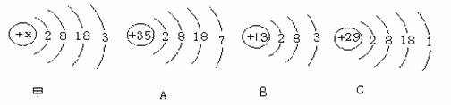 16、(3分)1998年中国十大科技成果之一是合成氮化镓纳米材料,已知镓(Ga)的原子结构示意图如图(甲)所示,则:x的值为 ,镓元素的化学性质与下列哪种元素的化学性质最相似 ,(在A、B、C图中选择,填字母),它的氯化物(氯化镓)的化学式为: 。