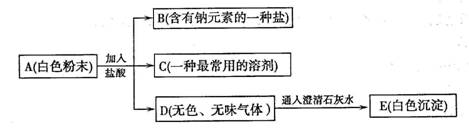 28.(3分)小明在家中厨房取得一种白色粉末A,到化学实验室进行实验,结果如下图所示: