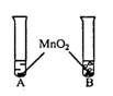 ①将等体积的两种无色液体分别加入A、B两个试管中。 ②分别向A、B两试管中同时加入等质量(少量)的二氧化锰,观察现象。 |