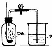 第三步:待红磷熄灭并冷却后,打开弹簧夹,发现水被吸