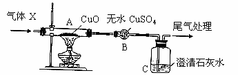 (1)若观察到A中黑色CuO变红,B中白色无水CuSO4变蓝,C中澄清石灰水无明显变化,则X可能是 ,A中发生反应的化学方程式为 ;