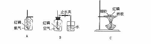 (3)实验三:如图C所示,将少量红磷放置在一块铁板上,再用细砂完全覆盖,用酒精灯加热铁板一段时间,看不到明显现象,这是因为 ;撤去酒精灯后,立即将砂子拨开露出红磷,看到红磷燃烧,这是因为 。
