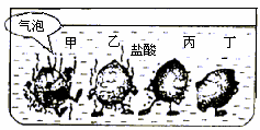 (1)从小明所画的卡通画推知,甲、乙、丙、丁四种金属的活动性由强到弱的顺序可能是 。
