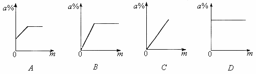 25. 某温度下,向一定量的水中不断加入食盐晶体,同时不断搅拌。下列表示加入食盐的质量m与所得溶液中食盐的质量分数a%的图象中,正确的是( )