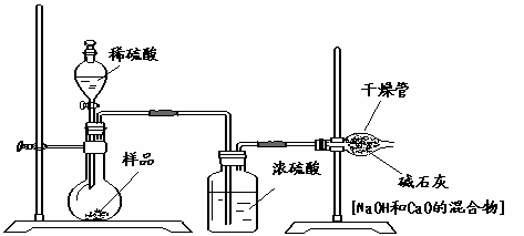 (1)根据乙的实验装置图分析,请你说出浓硫酸的作用是______________________,碱石灰的作用是___________________________。按照乙的方案进行测定,将会导致不可避免的误差,例如:装置内空气中的CO2没有排出;反应产生的CO2未被完全吸收。该设计中还有一项也会导致不可避免的误差,你认为应该是下列选项中的(填序号)______________。