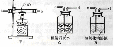 ⑵在实验时,上述仪器的连接顺序是丙→乙→甲→乙。其中乙装置需要使用两次,这两次的作用分别是:第一次 。