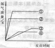19、相同质量的铁、锌、镁、铝分别与足量的盐酸反应,产生氢气的质量与反应时间的关系如图所示,图中曲线①②③④对应的金属是( )