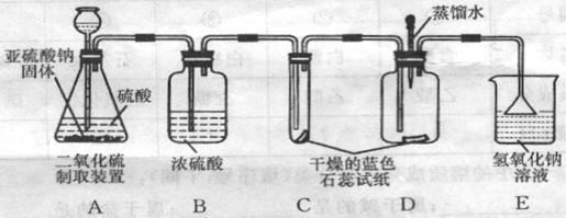 (2)设计方案:先验证水能否使蓝色石蕊试纸变色,再验证二氧化硫气体能否使干燥的蓝色石蕊试纸变色,最后验证二氧化硫气体能否使湿润的蓝色石蕊试纸变红,实验装置和药品如图: