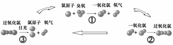 (2)请写出上述循环过程中臭氧被破坏的总反应的化学方程式(1个)_________________。