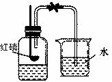 24、某同学利用右图装置测定空气中氧气的含量,红磷燃烧后恢复至室温,打开弹簧夹发现进入广口瓶的液体液面高度超过广口瓶体积的1/5,造成这一现象的原因可能是