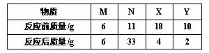 25、在一个密闭容器内有M、N、X、Y四种物质,在一定条件下反应一段时间后,测得反应前后各物质的质量如下: