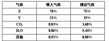 (3)X气体在呼吸过程中,没有参与化学反应,但在呼出气体中体积分数和却减少了,