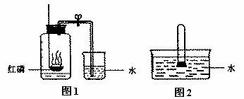 实验2:将试管的容积5等分,做好标记,在试管中加入一小块白磷(足量),用橡皮塞塞紧试管口,将试管放入热水中使白磷燃烧,待白磷熄灭并冷却到室温后,将试管倒立于盛有室温下水的水槽中(如图2所示),并在水中将橡皮塞取下。