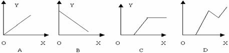 9、工业盐酸因含有FeCl3而显黄色,现向1-2ml工业盐酸中逐滴滴加NaOH溶液,其加入量(X)与生成沉淀量(Y)的关系应是: ( )