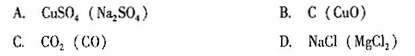 28.下列各组混合物中,用一种试剂不能将括号内杂质除去的是