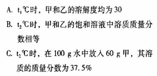 29.甲、乙两物质的溶解度曲线如右图所示。下列叙述中,正确的是