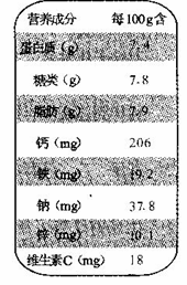 ① 汽油② 柴油③ 食用酒精 ( 3 )人们正在利用和开发太阳能、核能及_____(只填一种)等新能源。其中氛的核能开发,被认为是解决未来世界能源、环境等问题的主要途径之一。已知氛和氢是同种元素,则氖原子核内的质子数为__。 33. ( 4 分)右表为某品牌燕麦片标签中的一部分。