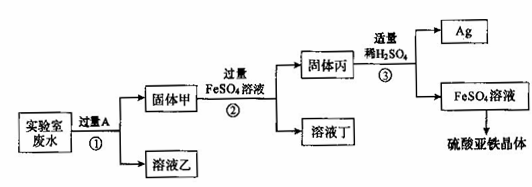 (2)固体甲中含有的物质是(填化学式)_ , (3)步骤① 向废水中加人过量A 。检验A 是否过量的方法是_。