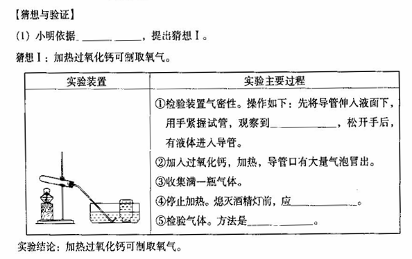 ( 2 )小明联想到农民用过氧化钙增加鱼池中的含氧量,提出猜想Ⅱ猜想Ⅱ :过氧化钙.与水反应可制取氧气。