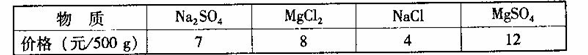 请根据计算,从下表中选择两种盐,配制一种最简单、最便宜的 “人工海水”, 使该“人工海水”中的钠元素、镁元素含量和海水基本相同。
