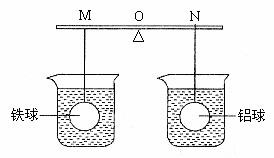 22. 在杠杆的两端分别挂着质量和体积都相同的铁球和铝球,这时杠杆平衡。将两球分别浸泡在质量相同、溶质质量分数也相同的稀硫酸中,如图所示,直至两个烧杯中均没有气泡产生为止,两球的外形变化不大,且无孔洞出现,下列推测中正确的是( )