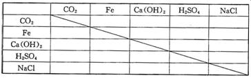 20.现有CO2、Fe粉、饱和Ca(OH)2溶液、稀H2SO4、NaCl溶液等五种物质,请依据下表进行分析,它们两两之间能发生的反应有 ( )
