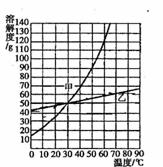 (2)30℃时,将等质量的甲、乙物质的饱和溶液分别降温至0℃,析出晶体的质量是甲 乙(填“>”、“<”或“=”)。