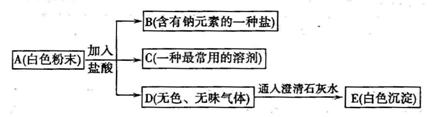 28.(5分)学了化学后,小刚同学在家中厨房取得一种白色粉末A,到化学实验室进行实验,结果如下图所示: