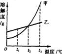 A.t1℃时,甲物质的溶解度小于乙物质的溶解度
