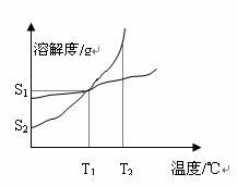 2)当T1℃<T<T2℃时,T℃时100gA的饱和溶液和100gB的饱和溶液所含溶剂的质量是