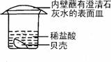 8.贝壳的主要成分是碳酸钙,小强设计了如右下图的实验进行探究,以下关于此实验现象的描述中,错误的是[ ]