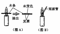 ⑴点燃蜡烛,将一根小木条迅速平放入火焰中,约