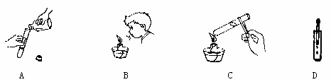 ⑵向焰心斜向插入一支细短玻璃管,发现玻璃管中无明显现象(如右图B),在玻璃管的上口点燃,上口产生火焰,这说明焰心物质的性质是 、 。