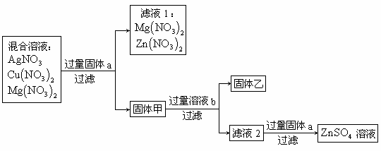 现有硝酸银、硝酸铜和硝酸镁三种物质组成的混合溶液,进行下列实验: