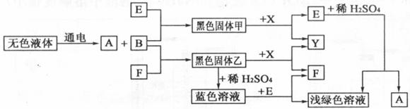 下列关系图中,A、B、X、Y均为无色气体,E、F为常见金属。