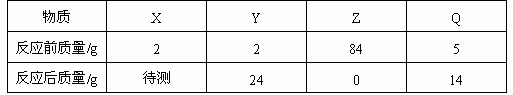 29. 在一个密闭容器内有X、Y、Z、Q四种物质,在一定条件下充分反应,测得如下数据: