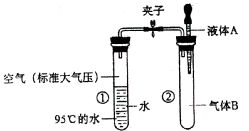 32. 如下图所示,夹子开始处于关闭状态,将液体A滴入试管②与气体B充分反应,打开夹子,可发现试管①内的水立刻沸腾了。则液体A和气体B的组合可能是下列的()