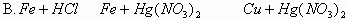 33. 为了测定Fe、Cu、Hg、H的化学活动性,某同学利用铁片、铜片、硝酸汞溶液和盐酸四种物质,设计了下列实验方案,其中可行的是()