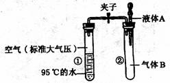 液体A滴入试管②与气体B充分反应,打开夹子,可发现试管①内的水立