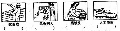 11.(4分)氧气、干冰、熟石灰和纯碱四种物质分别与下列图中的人类活动有关,请将