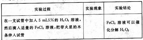 向盛有5 mL 5%的H2O2溶液的试管中加入少量的_______,并把带火星的木条伸入试管 |