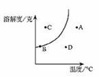 10.右图是某固态物质的溶解度曲线,试判断该溶液在A、B、C、D四种状态时,属于不饱和溶液的是