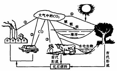 (5)大气中CO2含量的增加给地球生态环境带来一个重要后果是 。根据上图CO2生产生和消耗途径,对此,你提出2条建议是: