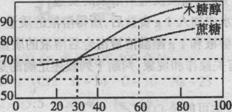 ⑴比较: 在人体体温37℃时,两种物质的溶解度木糖醇 蔗糖(填写“>”或“<”或“=”);通过比较溶解度曲线,请你说出这两种物质在溶解度方面的一个共同点